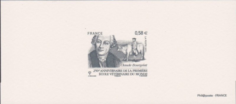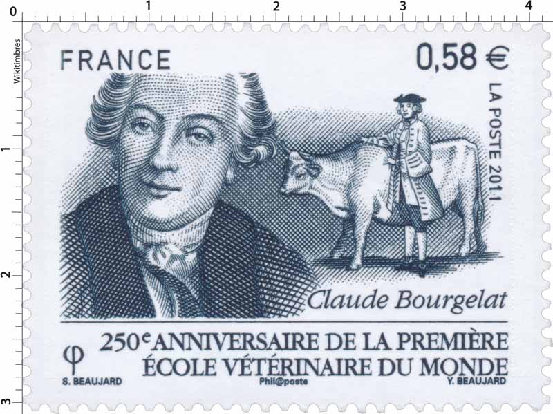| Commentaire | Existe également en autoadhésif . C'est à Claude Bourgelat que L'on doit La création, il y a 250 ans à Lyon, de La première école vétérinaire du monde. Pour célébrer cet évènement, 2011 a été déclarée Année Mondiale Vétérinaire