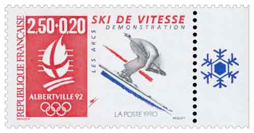 | Description | Albertville 92. Jeux olympiques d'hiver, ski de vitesse (démonstration). Types des T.-P. de 1990 et 1991, avec valeur faciale différente |