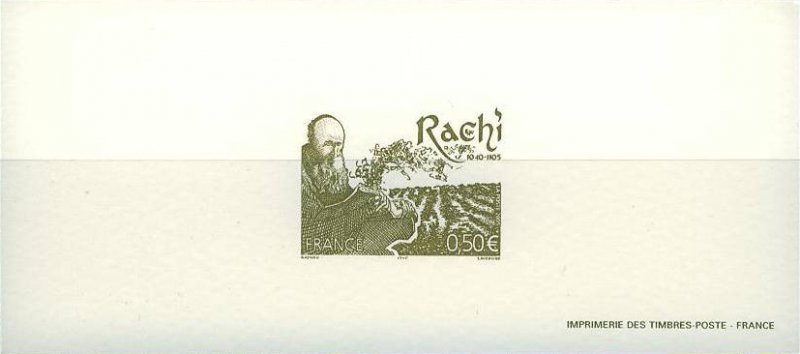 | Description | Pour les 900 ans de la mort de Rachi (1040-1105), rabbin, commentateur de la Bible et du Talmud, né à Troyes (Aube) |