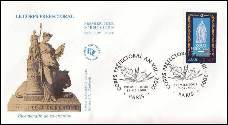 | Description | Bicentenaire de la création du Corps préfectoral (an VIII-2000), par la loi du 28 pluviôse an VIII (17 février 1800), pendant le Consulat à l'initiative de Napoléon Bonaparte |