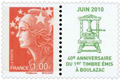 | Description | Marianne de Beaujard, 40e anniversaire du premier timbre émis à Boulazac (Dordogne) |