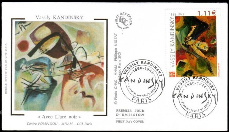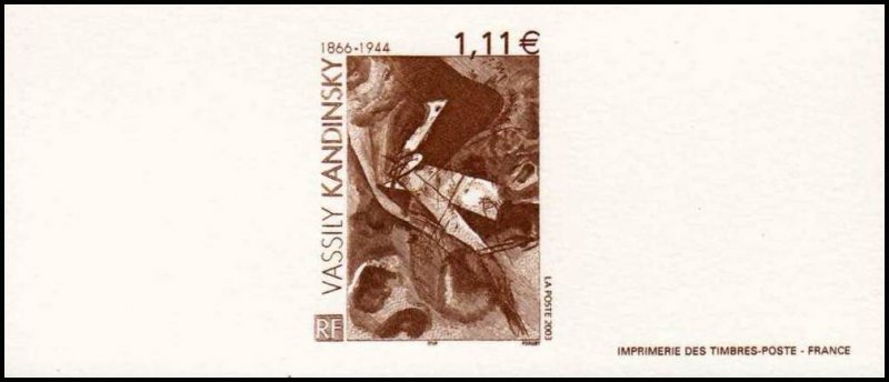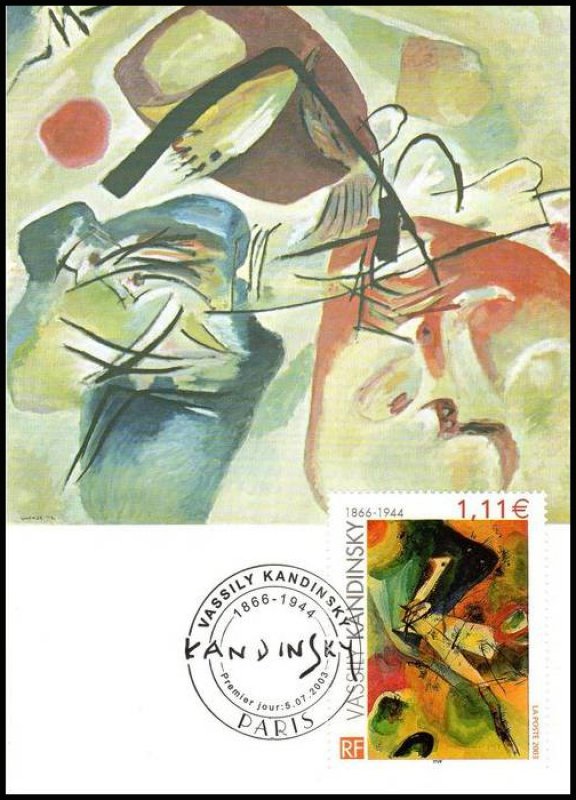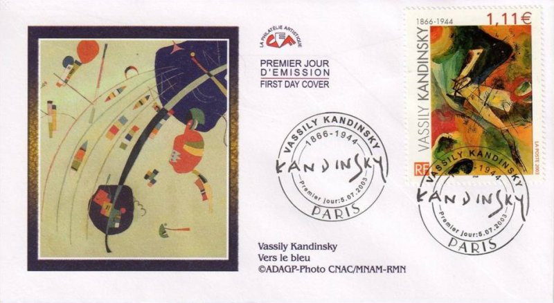 | Commentaire | Description synthétique du visuel du timbre : Peintre, graveur, théoricien, auteur de décors et costumes de ballet, Vassily Kandisky est né à Moscou en 1866, est naturalisé allemand en 1928, puis français et meurt à Neuilly sur Seine en 1944. Ce n’est qu’en 1896 qu’il abandonne une carrière juridique pour étudier la peinture, après avoir eu la révélation des œuvres impressionnistes, en particulier les Meules de Claude Monet. Ses premières œuvres furent imprégnées de naturalisme, d’impressionnisme, d’expressionnisme allemand, de fauvisme français et de romantisme russe jusqu’en 1910 où une aquarelle est considérée comme sa première œuvre délibérément abstraite. Présentant des taches colorées et un graphisme nerveux, comme impulsif, ses œuvres de cette époque sont reconnues comme les premiers exemples de l’abstraction lyrique. L’œuvre (sans titre) illustrant le timbre date de 1915, de l’époque dite dramatique, et met en œuvre des couleurs et des formes libres libérées de toute associations figuratives. Pionner d’une nouvelle aventure, Kandinsky demeure un jalon essentiel dans l’histoire de la peinture du XXe siècle. |