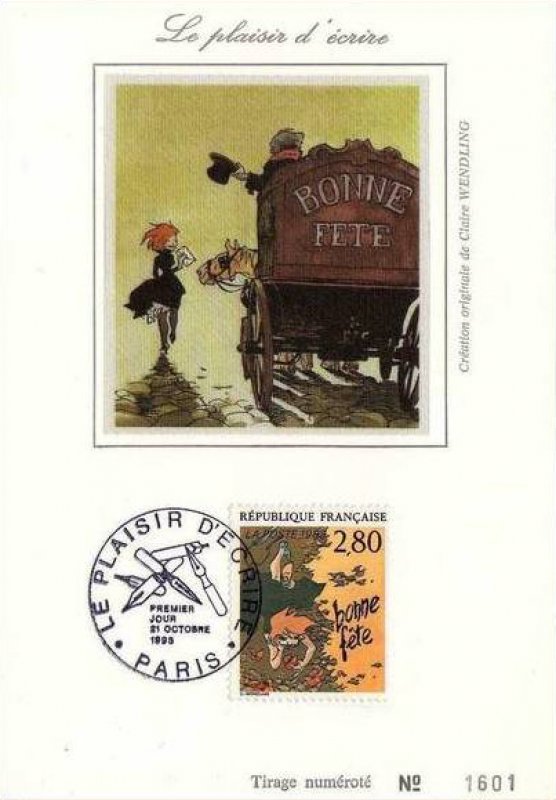 | Description | Le plaisir d'écrire vu par 12 auteurs de bandes dessinées. Bonne fête, de Claire Wendling, illustratrice et une auteur de bandes dessinées, née à Montpellier en 1967 |