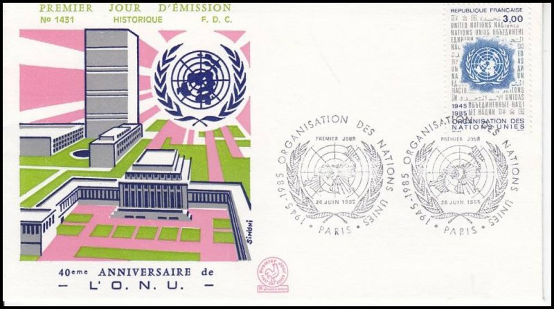 | Description | 40e anniversaire de l'organisation des nations unies (1945-1985) |