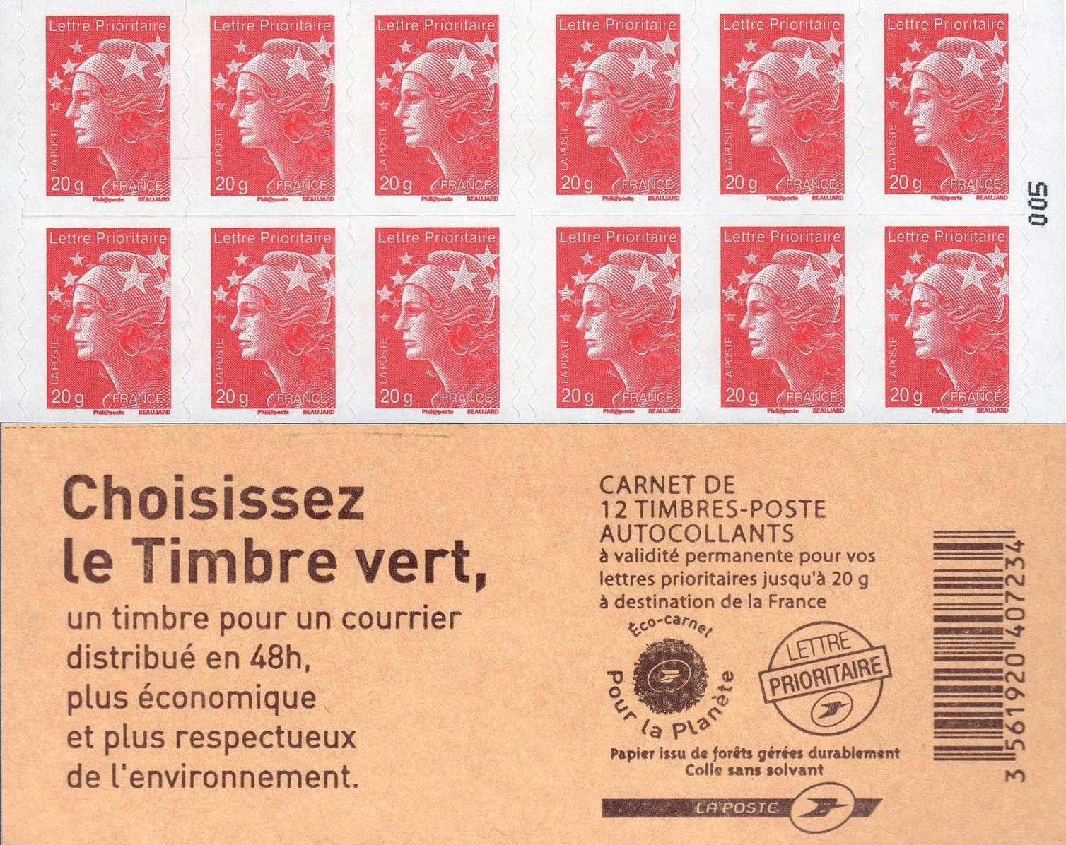 | Description | Carnet - Lettre Verte 20 g - couv. Choisissez Le Timbre vert |