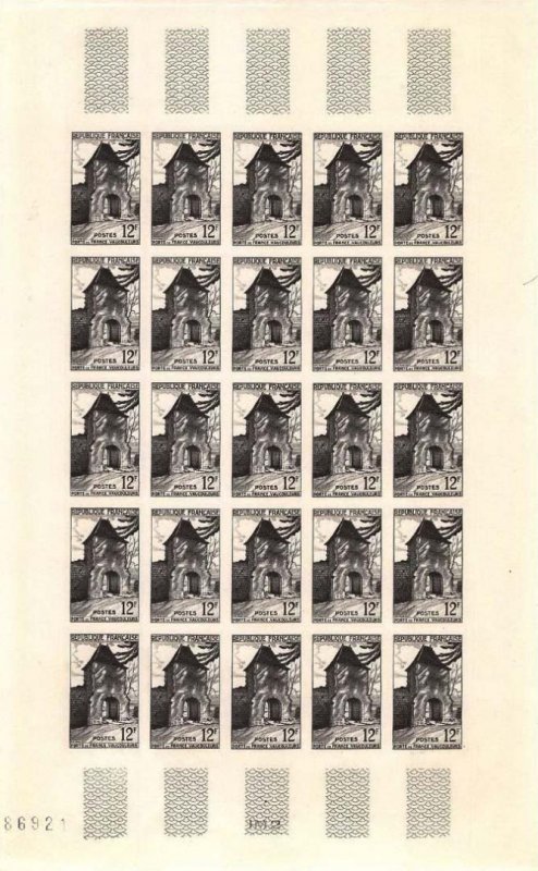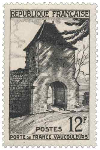 | Commentaire | Porte de France - Vaucouleurs. Mis en vente en France à partir du 11 mai 1952 à Vaucouleurs, puis du 12 mai dans l’ensemble des bureaux du territoire, le timbre-poste représentant la Porte de France s’inscrit dans la série touristique de la poste française, destinée à valoriser les sites historiques associés aux grands épisodes du passé national. Dessiné et gravé en taille-douce par Gabriel-Antoine Barlangue, ce timbre vertical de 12 francs illustre l’un des derniers vestiges des fortifications médiévales de Vaucouleurs, lieu emblématique lié au départ de Jeanne d’Arc en février 1429. C’est par cette porte que la jeune paysanne quitta la ville, munie de lettres de créance et escortée vers le Dauphin, amorçant ainsi une séquence décisive de la guerre de Cent Ans. L’émission de 1952 s’inscrit dans une démarche mémorielle visant à rappeler le rôle stratégique et symbolique de certaines villes frontières demeurées fidèles à la couronne de France à l’époque médiévale. Intégré au service postal courant, ce timbre associe usage pratique et évocation historique, contribuant à la diffusion d’un patrimoine architectural étroitement lié à l’identité nationale.