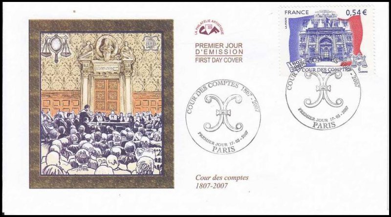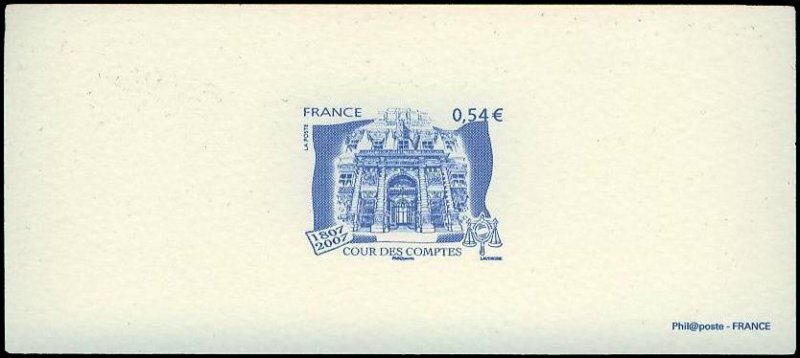 | Commentaire | Précurseur de la Cour des Comptes, la Chambre des Comptes depuis le Moyen-âge et jusqu’à Napoléon, exerçait l’ensemble de la juridiction financière, parfois avec d’autres compagnies du même ordre en Province, comme sous l’Ancien Régime. La Chambre des comptes fut supprimée à la révolution. Pour garantir la régularité de l’emploi des deniers publics, Napoléon décida par la loi du 16 septembre 1807 de reconstituer une juridiction financière : la Cour des comptes. Les fonctions de la Cour des comptes sont aujourd’hui considérablement élargies. Elle a désormais compétence pour contrôler obligatoirement l'État, les établissements publics nationaux , les entreprises publiques (depuis 1976) et les organismes de sécurité sociale (depuis 1950) et facultativement certains organismes (de droit privé, d’intérêt général …) et a pour mission le contrôle de régularité, le contrôle de la gestion, l'assistance au Parlement et au Gouvernement. Elle est à la fois un juge et un organe de conseil au service du législateur et de l’exécutif. A l’occasion du bicentenaire de la Cour des Comptes, un timbre est émis en mars 2007. |
