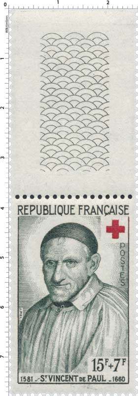 - Saint Vincent de Paul: Aumônier gal des galères, père des enfants trouvés. Ce timbre est grevé d'une surtaxe au profit de la Croix Rouge française