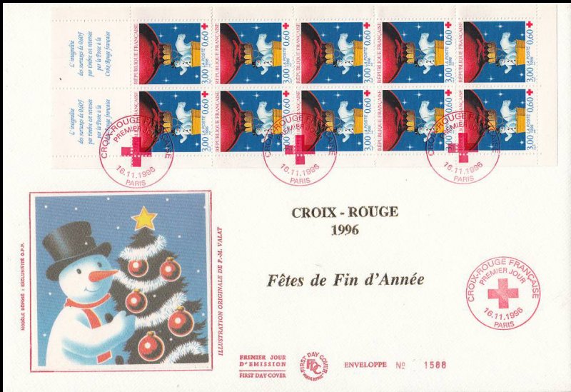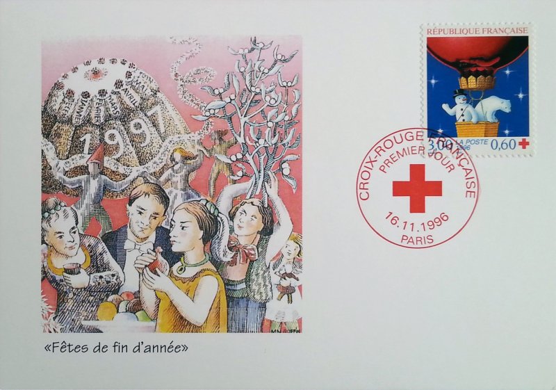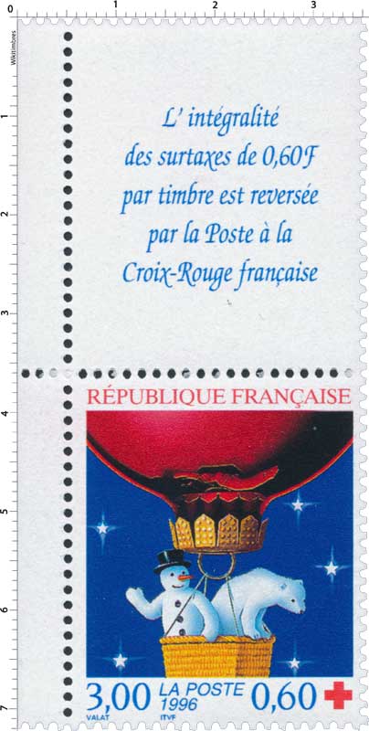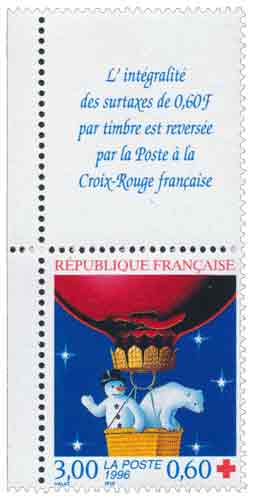 | Description | Au profit de la Croix-Rouge française. Fêtes de fin d'année - Ours blanc et bonhomme de neige dans un ballon (issu du carnet) |