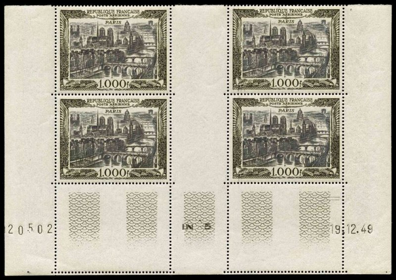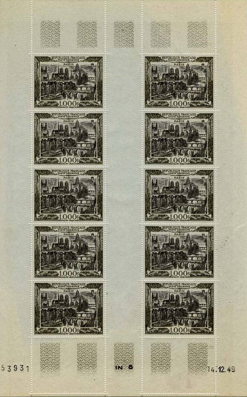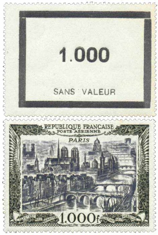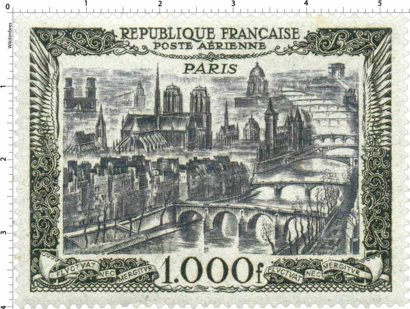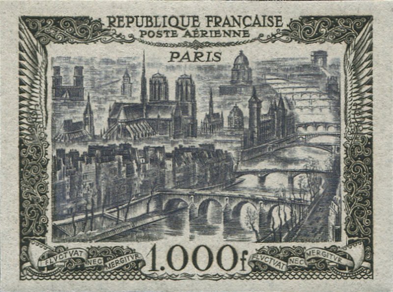 | Commentaire | Une partie de son tirage a été surchargée en francs CFA pour qu'il puisse servir à la Réunion. Ce dernier timbre est plus rare que la version de métropole aussi bien en neuf qu'en oblitéré. Ce TP existe avec le fond blanc - réf Y&T PA29b Visuel : Ile St-Louis (quai d'Anjou et ponts "Marie" et "Louis Philippe") – Ile de la Cité, avec l'enfilade de ponts sur la Seine, les quais aux Fleurs et de la Corse - la façade Nord-Est de la cathédrale Notre-Dame, avec les arcs-boutants, la toiture, la flèche et les deux tours - le quai de l'Horloge, avec l'ensemble du Palais de la Cité (du Xe au XIVe siècle), aujourd'hui le Tribunal de Paris et ancienne prison de la Conciergerie. (depuis 1370), et la Ste-Chapelle (1242-1248) – arrière plan, rive droite (Nord) : le pavillon de Flore (Musée du Louvre) et l'Arc de Triomphe - arrière plan, rive gauche (Sud) : l'église St-Séverin (XIIIe au XVe siècle, à gauche de Notre-Dame), à l'arrière : l'église St-Sulpice le Pieux (1646- 1870) - l'église abbatiale de St-Germain-des-Près (ancienne abbaye, de 558 à la Révolution) et le dôme de l'Hôtel des Invalides (gauche de la Seine). |