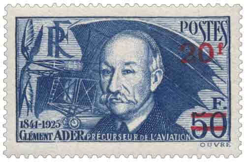 | Commentaire | Clément Ader (1841-1925) Voir la vidéo "Histoires de timbres" Le timbre Clément Ader 20F sur 50F, mis en vente générale le 24 janvier 1941, est l'une des pièces les plus rares de la période en raison de son tirage très limité à 420 000 exemplaires. Cette émission de nécessité consiste en une surcharge rouge appliquée sur la forte valeur de 50F outremer émise en 1938 pour le centenaire de la naissance de l'ingénieur. Dessiné et gravé par Achille Ouvré, le portrait rend hommage au pionnier toulousain, précurseur de l'aviation, qui réalisa le 9 octobre 1890 le premier décollage d'un engin motorisé plus lourd que l'air avec son appareil Éole. Imprimé en taille-douce rotative sur la presse n° 4 par feuilles de 25 exemplaires, le timbre présente une dentelure 13 pour un format d'image de 36x21,45 mm. Sa valeur de 20,00 francs servait principalement aux affranchissements lourds ou aux services spéciaux du régime international. En raison de la rareté du support d'origine et de la brièveté de sa mise en circulation, il fut retiré de la vente dès le 15 mai 1941. Les collectionneurs recherchent activement les coins datés de cette émission, qui témoigne de l'excellence de la gravure française mise au service de l'histoire des sciences et des techniques. |