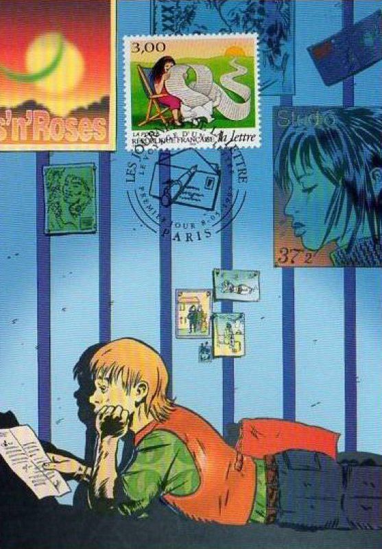 | Commentaire | Les journée de la lettre. Le voyage d'une lettre Sa longue et captivante lecture (émis en carnet auto adhésif) Timbre sans millésime |