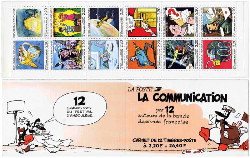 | Commentaire | La communication vue par 12 auteurs de bandes dessinées français lauréats du 'Grand prix' du festival d'Angoulême La bande (format vertical) destinée à la confection de carnets |