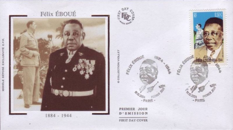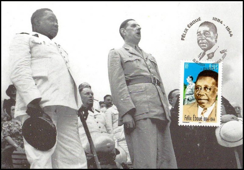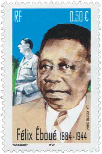 | Description | Personnalité. 120e anniversaire de la naissance et 60e anniversaire de la mort de Félix Éboué (1884-1944), né à Cayenne (Guyane). À l'arrière-plan, le général de Gaulle, rappel du ralliement de l'administrateur colonial à la France libre |