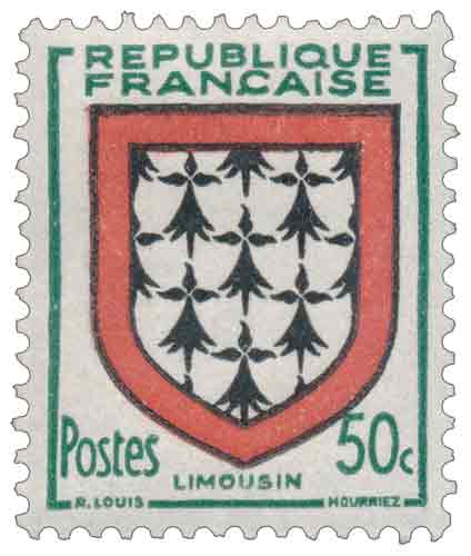 | Commentaire | Émis par la France en juin 1951, ce timbre gommé représentant les armoiries du Limousin appartient à la cinquième série des Armoiries des provinces françaises, programme philatélique destiné à faire connaître l’héraldique territoriale par des valeurs d’usage courant. Mis en vente le 25 juin 1951, il est conçu pour l’affranchissement des journaux et des cécogrammes, ce qui explique à la fois sa faible valeur faciale et son tirage très élevé. Le dessin de Robert Louis restitue les armes traditionnelles du Limousin — champ parti associant les symboles historiques de la province — dans une composition claire et immédiatement lisible malgré le petit format. La gravure en typographie rotative, réalisée par Georges Hourriez, permet une impression industrielle rapide, conforme à la vocation utilitaire de l’émission. Ce timbre s’inscrit ainsi dans une série où la fonction postale prime, tout en assurant une diffusion massive des emblèmes provinciaux auprès du public de l’après-guerre, participant à une pédagogie discrète de l’histoire régionale par l’usage quotidien du courrier. |