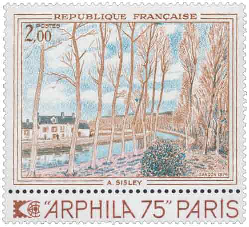 | Commentaire | Émis par la France en 1974 dans le cadre d’ARPHILA 75, ce timbre reproduit l’œuvre « Canal du Loing » d’Alfred Sisley et s’inscrit dans une politique culturelle postale attentive à la diffusion du patrimoine pictural impressionniste. À cette date, l’impressionnisme bénéficie d’une reconnaissance institutionnelle désormais établie, et le choix de Sisley souligne une sensibilité particulière pour un artiste dont l’œuvre, longtemps restée discrète, incarne une approche intime et rigoureuse du paysage. Le sujet retenu renvoie à l’environnement de Moret-sur-Loing, où le peintre trouva un ancrage durable et une source d’inspiration constante, loin des scènes mondaines. Le canal, élément technique du paysage fluvial français, y apparaît totalement intégré à la nature, dans une composition dominée par l’équilibre des masses, la fluidité de la perspective et l’attention portée aux variations de la lumière. Cette représentation correspond à la démarche de Sisley, qui privilégia toute sa vie l’observation directe des ciels et des reflets, sans emphase narrative, mais avec une constance remarquable. En choisissant cette œuvre, l’administration postale met en avant un art du paysage étroitement lié à la géographie française et à ses transformations, tout en rappelant le rôle du réseau fluvial dans l’aménagement du territoire au XIXᵉ siècle. Le timbre devient ainsi un vecteur de transmission culturelle, associant création artistique et circulation quotidienne du courrier, dans l’esprit du « musée imaginaire » développé par la philatélie française. Par sa diffusion massive, il contribue à familiariser un large public avec une œuvre emblématique de l’impressionnisme, tout en affirmant la capacité du timbre à porter une mémoire artistique et historique partagée, au croisement de l’art, du territoire et de la commémoration. Article rédigé pour WikiTimbres |