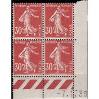 | Commentaire | Semeuse camée. Type IIA. Voir la vidéo "Histoires de timbres" En savoir plus sur Wikipédia : semeuse camée Émis le 13 avril 1937, ce timbre est une réimpression tardive de l'iconique Semeuse de Roty, l'un des types courants français les plus célèbres, créé par Louis-Oscar Roty et gravé par Louis Eugène Mouchon. Cette version est du type "fond plein sans sol" et se distingue par sa couleur rouge foncé et sa valeur faciale de 30 centimes. Imprimé en typographie à plat, ce timbre vertical était principalement destiné à couvrir des tarifs spécifiques et peu courants en 1937, tels que la taxe pour les objets insuffisamment affranchis ou l'affranchissement des échantillons (deuxième échelon de poids). Malgré sa création ancienne, la Semeuse restait un pilier de l'affranchissement postal français, la couleur étant ajustée à la valeur selon les directives de l'Union Postale Universelle. Bien que les chiffres exacts de son tirage soient inconnus, la longue période de disponibilité de cette émission, retirée de la vente seulement le 28 décembre 1940, assure sa présence régulière dans les collections. |