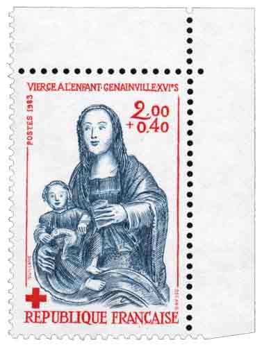 | Description | Au profit de la Croix-Rouge française. Vierge à l'enfant, début XVIe, église de Genainville (Val-d'Oise) |