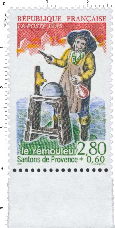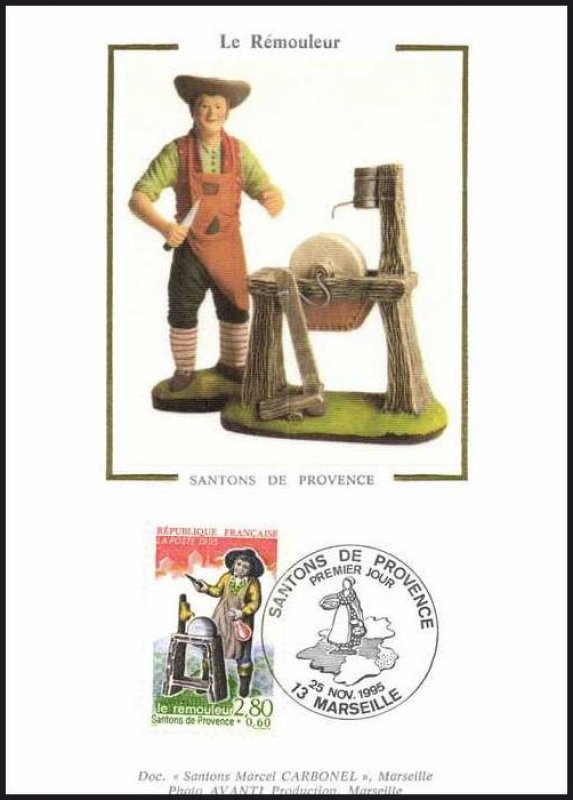 | Description | Les santons de Provence, Le rémouleur (provenant d'une feuille de 50 TP) |