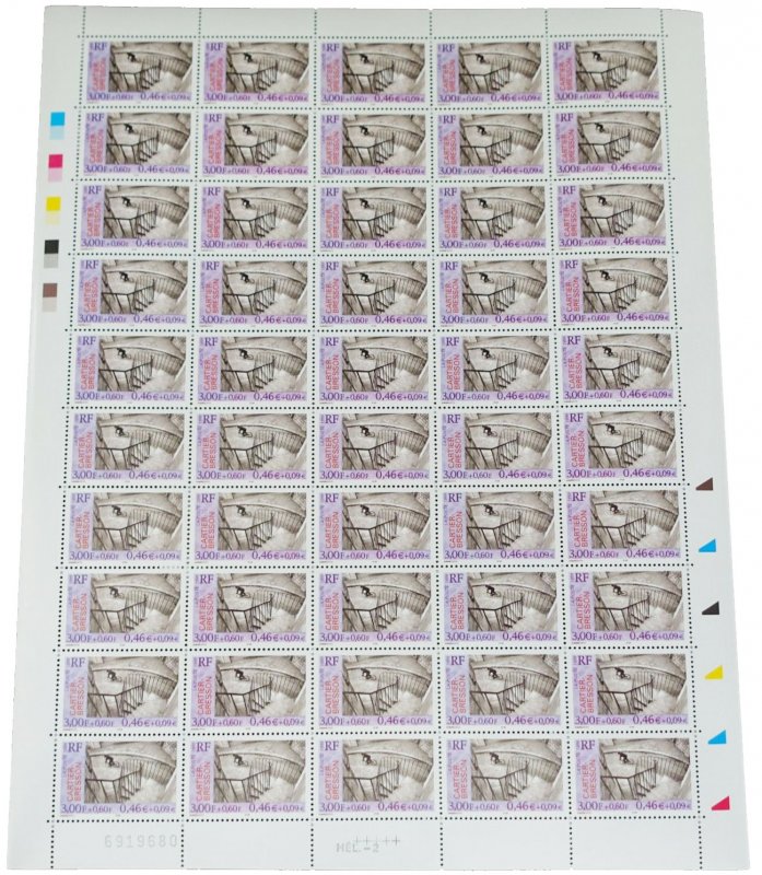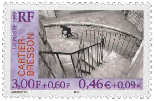 | Commentaire | Description synthétique du visuel du timbre : Henri Cartier-Bresson est né en 1908. Peintre à l’atelier d’André Lhote (1927-1928), puis photographe dès 1932, il fut aussi l’assistant de Jean Renoir. Il fonda en 1947 l’agence photographique coopérative Magnum Photos avec Robert Capa et d’autres photographes. Son approche humaniste des faits, ses règles esthétiques et morales ont marqué l’époque du photojournalisme et influencé les générations futures. Chaque fois, il a guetté le fameux “moment décisif ” où tous les éléments de l’image s’agencent de la manière la plus signifiante. Henri Cartier-Bresson vit toujours à Paris et s’adonne aujourd’hui au dessin. Une de ses photos parmi les plus connues, illustre le timbre. |