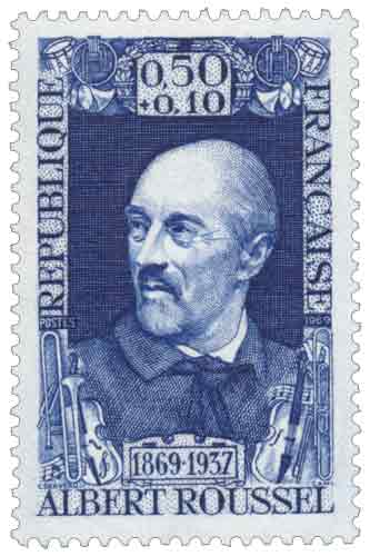 | Commentaire | Le timbre français émis en 1969 à l’occasion du centenaire de la naissance d’Albert Roussel s’inscrit dans la série des Célébrités du XVIIIᵉ au XXᵉ siècle et rend hommage à une figure majeure de la musique française du premier XXᵉ siècle, dont l’œuvre témoigne du passage d’un langage hérité de l’impressionnisme vers une écriture plus architecturée et personnelle ; conçu dans le cadre des émissions caritatives de l’année et assorti d’une surtaxe au profit de la Croix-Rouge française, ce timbre commémoratif rappelle le parcours singulier d’un compositeur formé d’abord comme officier de marine avant de se consacrer pleinement à la création musicale, symbolisant une génération de musiciens qui ont renouvelé les formes symphoniques et scéniques en France au lendemain de la Belle Époque, tandis que la vente anticipée organisée à Tourcoing, ville natale de Roussel, souligne l’ancrage territorial du sujet et la volonté de la Poste de relier mémoire artistique et histoire locale dans sa politique commémorative. Article rédigé pour WikiTimbres |