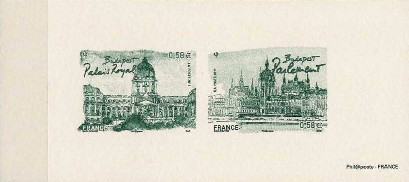 | Commentaire | Capitale européenne classée au Patrimoine Mondial par L'UNESCO, Budapest (formée par La fusion de Buda et de Pest) est illustrée ici par des timbres représentant son Parlement, son Palais Royal, Le Pont des Chaînes et Les bains Széchenyi. Budapest est en effet connue pour Les sources d'eau chaude qui remplissent ses célèbres bains. |