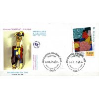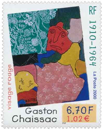 | Commentaire | Description synthétique du visuel du timbre : Issu d’une famille d’artisans, Gaston Chaissac s’établit d’abord comme cordonnier et inventa déjà des compositions à l’aide de débris de cuir. Il découvrit l’Art abstrait en 1937 mais se défendit toujours d’appartenir à l’Art brut. Son œuvre s’y apparente cependant par l’utilisation de matériaux ordinaires (pierre, tôle, débris de vaisselle) collés de préférence sur bois ou papier. En raison de son isolement volontaire, son œuvre ne fut reconnue qu’à partir de 1961. L’œuvre retenue pour le visuel du timbre, intitulée visage rouge, date de 1962, et a été réalisée en gouache et papiers peints collés sur papier, un des axes graphiques majeurs de Gaston Chaissac. L’inclinaison de l’œuvre et l’usage d’une typographie irrégulière, offre une mise en page en harmonie avec le style de Chaissac. |