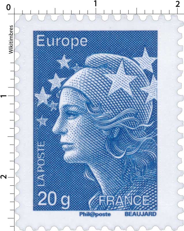 | Commentaire | Existe également en autoadhésif. Leur visuel évolue donc légèrement. Chaque timbre reçoit une mention “Ecopli”, “Lettre prioritaire”, “Monde” ou “Europe” en haut à gauche. Le poids autorisé s’inscrit en bas à gauche. La mention “France” bascule de gauche à droite. Les tarifs Ecopli 50 g et Europe 50 g disparaissent. La Marianne Ecopli 20 grammes abandonne sa couleur verte au profit d’un gris moyen. De plus, elle perd le fond de couleur du timbre pour faciliter sa reconnaissance par les machines de tri. Les Marianne de la monnaie (0,01 €, 0,05 €, 0,10 € et 1,00 €) sont inchangées et toujours disponibles. À partir du 1er juillet, ces nouvelles Marianne sont émises en planches, roulettes, carnets et planches autocollantes |