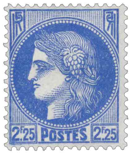 | Commentaire | Cérès de 1938. Émis le 24 janvier 1939 en typographie rotative, ce timbre vertical outremer (bleu foncé) est la troisième valeur du Type Cérès pour laquelle vous m'avez fourni des informations, s'appuyant toujours sur le dessin historique de Jacques-Jean Barre et gravé par l'atelier du timbre. Cette valeur de 2,25 Francs était cruciale car elle couvrait le tarif de l'affranchissement de la lettre simple pour l'étranger en 1939, faisant de lui un timbre internationalement important. L'émission fut considérable, avec 60,5 millions d’exemplaires produits, afin de répondre à la demande du courrier sortant. Ce timbre a été en circulation au début de la Seconde Guerre mondiale, avant d'être retiré de la vente le 28 décembre 1940. |