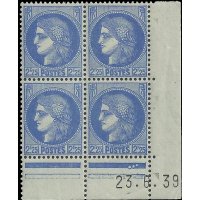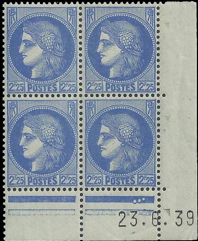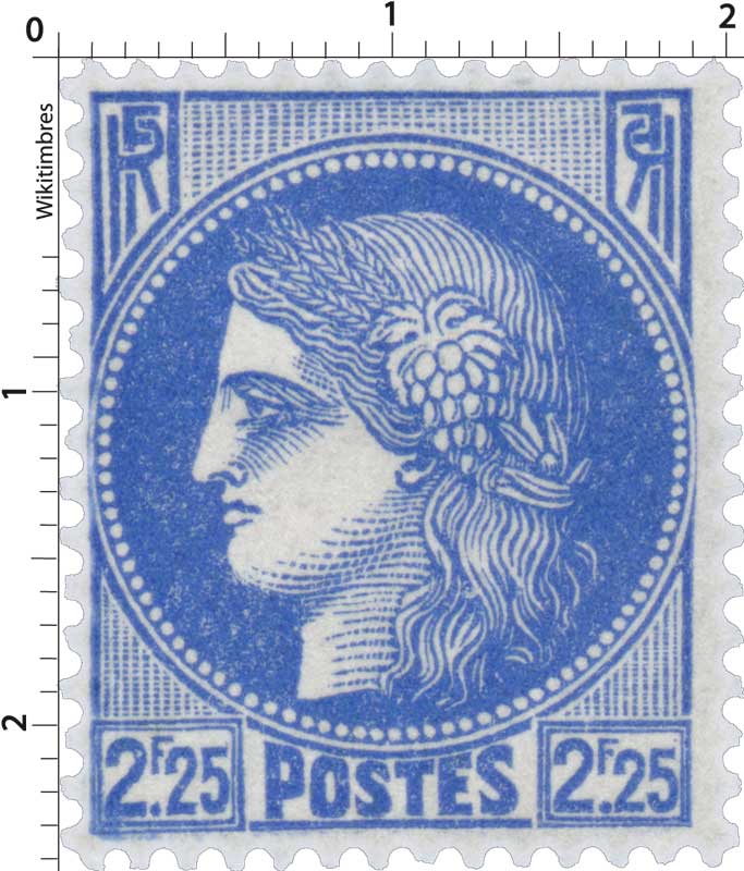 | Commentaire | Cérès de 1938. Émis le 24 janvier 1939 en typographie rotative, ce timbre vertical outremer (bleu foncé) est la troisième valeur du Type Cérès pour laquelle vous m'avez fourni des informations, s'appuyant toujours sur le dessin historique de Jacques-Jean Barre et gravé par l'atelier du timbre. Cette valeur de 2,25 Francs était cruciale car elle couvrait le tarif de l'affranchissement de la lettre simple pour l'étranger en 1939, faisant de lui un timbre internationalement important. L'émission fut considérable, avec 60,5 millions d’exemplaires produits, afin de répondre à la demande du courrier sortant. Ce timbre a été en circulation au début de la Seconde Guerre mondiale, avant d'être retiré de la vente le 28 décembre 1940. |