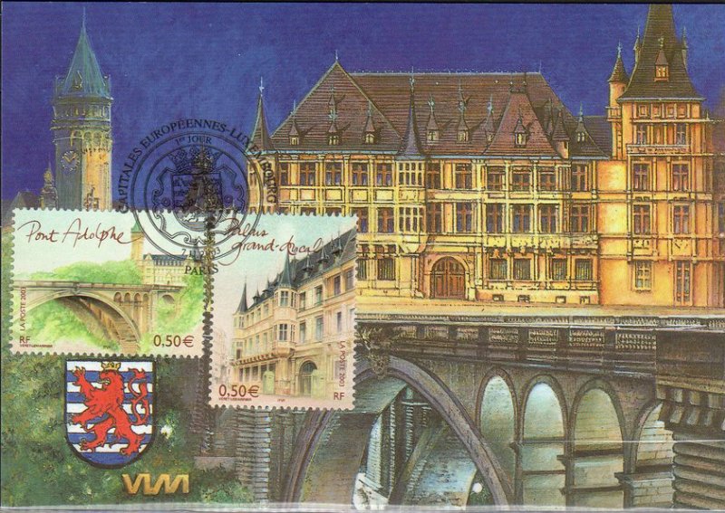 | Commentaire | Description synthétique du visuel du bloc Après Rome en 2002, la série Capitales Européennes se poursuit avec la ville de Luxembourg. Les quatre visuels des timbres représentés sur le bloc sont : la citadelle Saint-Esprit, la cathédrale Notre-Dame, le palais grand-ducal et le pont Adolphe. Des illustrations complètent le bloc. Émis uniquement en feuillet |