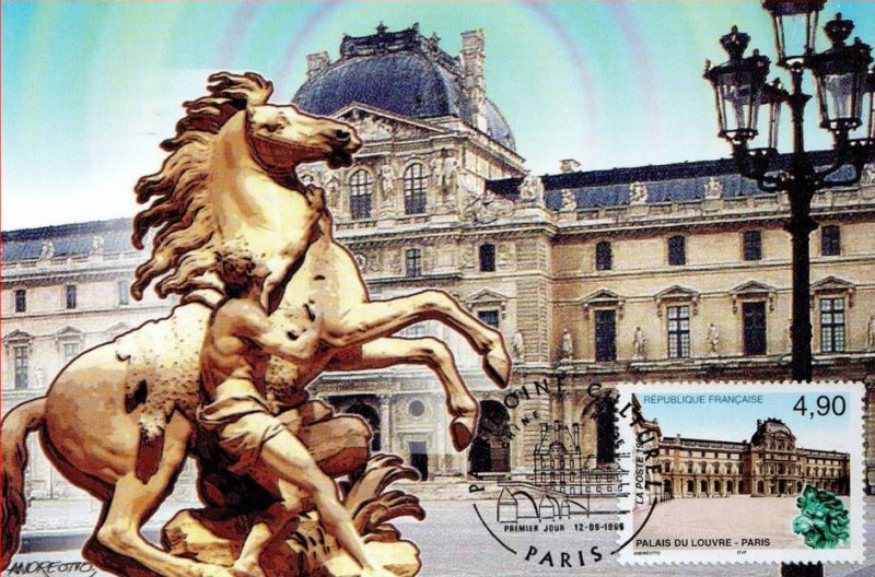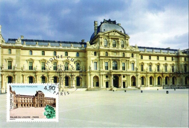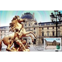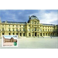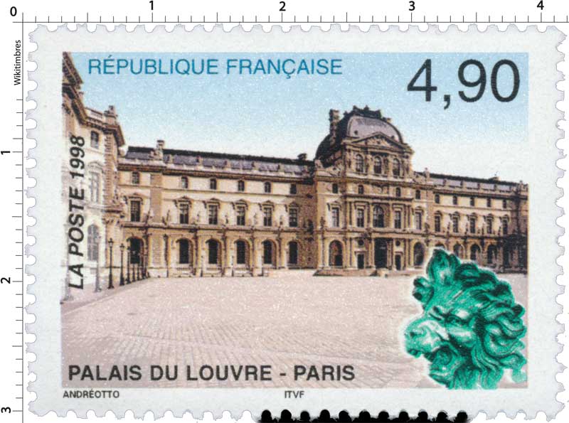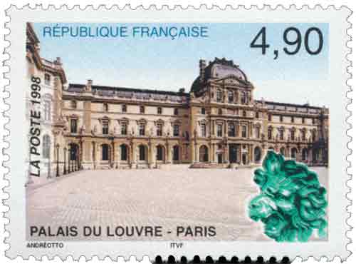 | Commentaire | Description synthétique du visuel du timbre : Représentation du Palais du Louvre, ancienne résidence royale, devenu l’un des plus riches musées du monde. L’aile du Louvre ici représentée est la façade est de la cour Napoléon, comprenant le Pavillon Sully, les ailes Henry IV et Henry II. Cette dernière correspond à la partie la plus ancienne de ce monument. La tête du lion figurant dans le coin inférieur gauche du visuel, et intégré aux motifs de plomb ornant le couronnement des dômes du pavillon Sully incarne le pouvoir, la sagesse et la justice. |