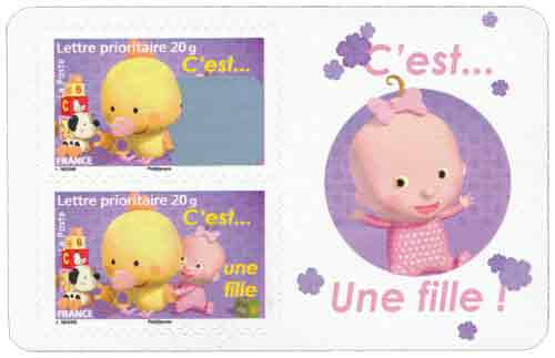 | Description | Timbres de naissances. C'est une fille timbre à gratter |