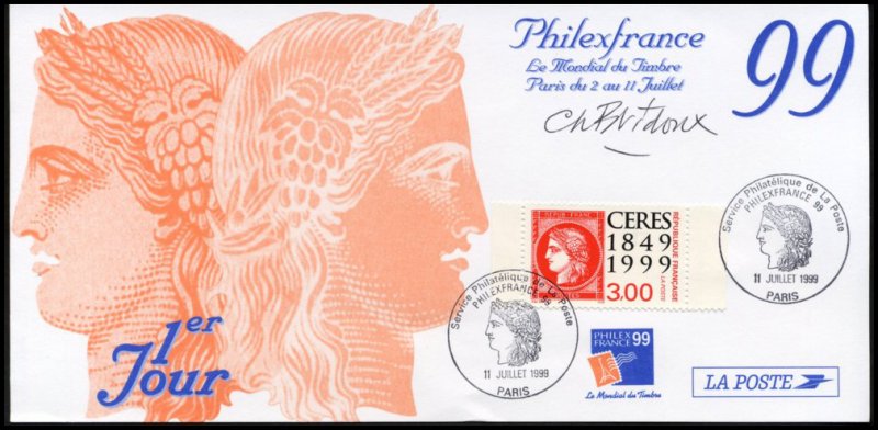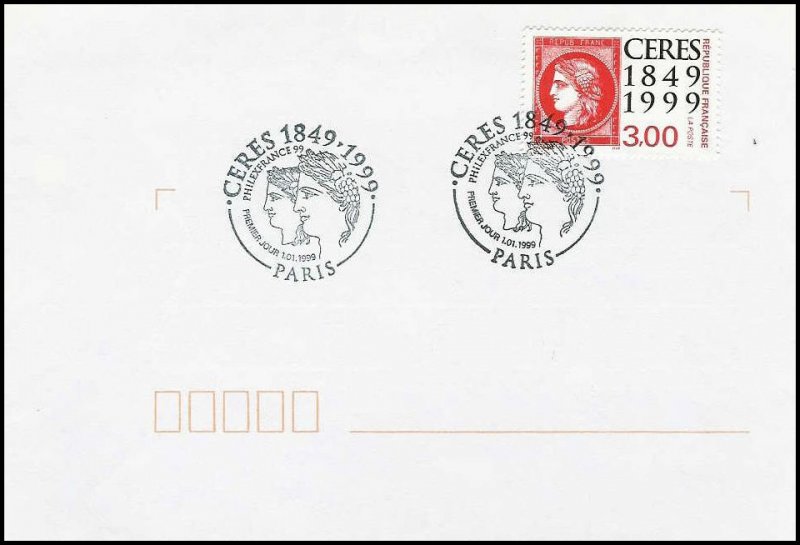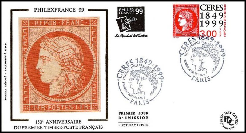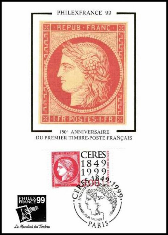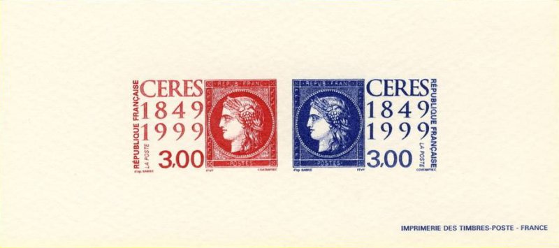 | Description | Cérès 1849-1999. 150e anniversaire du premier timbre-poste français. Émis en carnet. Timbres sur timbres |