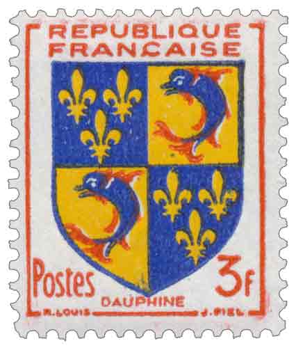 | Commentaire | Émis en France en 1953, le timbre-poste gommé représentant les Armoiries du Dauphiné appartient à la sixième série des Armoiries des provinces françaises, programme de la série courante destiné à rappeler l’héritage héraldique et territorial des anciennes provinces françaises à travers des timbres d’usage courant, et met en valeur l’identité historique du Dauphiné, principauté rattachée à la couronne de France au XIVᵉ siècle et durablement associée au titre de « dauphin » porté par l’héritier du trône ; mis en vente le 29 septembre 1953 à Paris à l’occasion du Salon d’Automne, puis diffusé le même jour dans l’ensemble des bureaux du territoire, ce timbre vertical de 3 francs est destiné à l’affranchissement des journaux, usage postal spécifique nécessitant des valeurs modestes mais produites en grandes quantités ; dessiné par Robert Louis et gravé par Jules Piel, il est imprimé en typographie, procédé industriel adapté à une forte diffusion, et reproduit avec clarté les armes traditionnelles du Dauphiné, dominées par le dauphin héraldique aux couleurs rouge, outremer et jaune, motif immédiatement identifiable et emblématique de la province ; cette émission s’inscrit dans la continuité des séries d’armoiries engagées après la Seconde Guerre mondiale, qui associent fonctionnalité postale et valorisation du patrimoine historique français sans caractère commémoratif explicite. |
