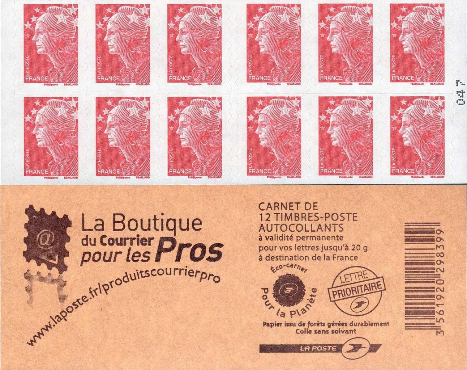 | Description | Carnet Marianne - Couverture “La Boutique du Courrier pour les Pros” 12 TVP autocollants |