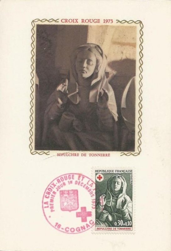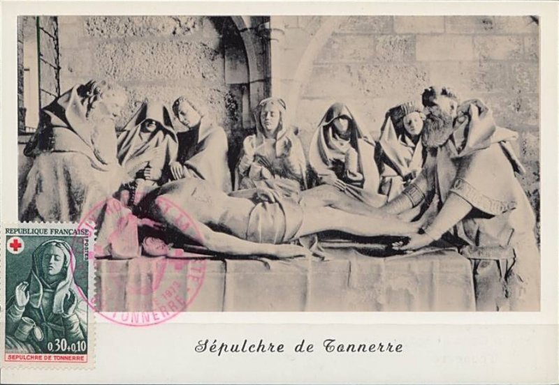 | Description | Au profit de la Croix-Rouge française. Sépulcre de l'Hôtel-Dieu aussi appelé Vieil Hôpital, de Tonnerre (Yonne). Représentation d'un des sept personnages de la pathétique mise au tombeau (1454), l'une des plus anciennes d'Europe |