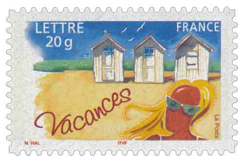 | Description | Timbre pour vacances. Sans valeur indiquée (validité permanente). Émis en carnet |