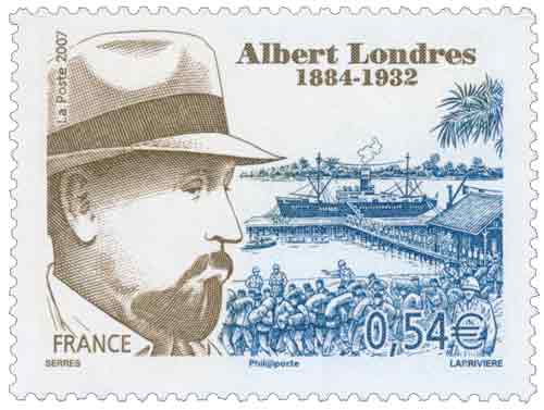 | Commentaire | Albert Londres est né à Vichy en 1884 et a commencé sa carrière de journaliste parlementaire en 1906 au Matin. Plus tard, ses reportages le mènent à l’étranger, Sud-est de l’Europe, Italie, URSS en 1920, Asie en 1922… L’un d’entre eux illustre le timbre : en 1923, Albert Londres se rend au bagne de Cayenne et dénonce les dysfonctionnements et les horreurs d’un système carcéral. Il s’insurge ensuite contre l’impitoyable règlement du Tour de France, contre les mauvais traitements dans les asiles psychiatriques, contre les conditions de travail en Afrique et la colonisation. En 1929, il dénonce l’antisémitisme très présent en Europe. Ses enquêtes ont toujours suscité de vives réactions tant dans l’opinion publique qu’au sein des autorités et ont abouti à des changements concrets. Il meurt dans l’incendie du bateau qui le ramène de Chine, où il aurait découvert apparemment un grand scandale …. Notre métier n'est pas de faire plaisir, non plus que de faire du tort. Il est de porter la plume dans la plaie
