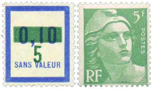 | Description | Rapprochement avec le timbre POSTE-1945-49 (fictif-1935-5 surchargé) |