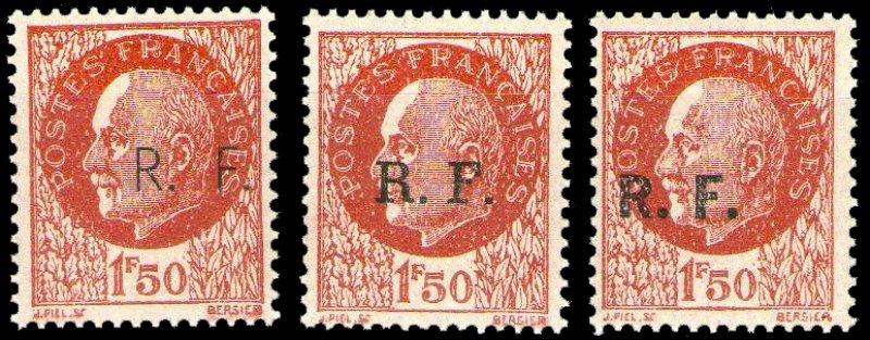 | Description | Maréchal Pétain, type Bersier, surcharge R.F. Type III |