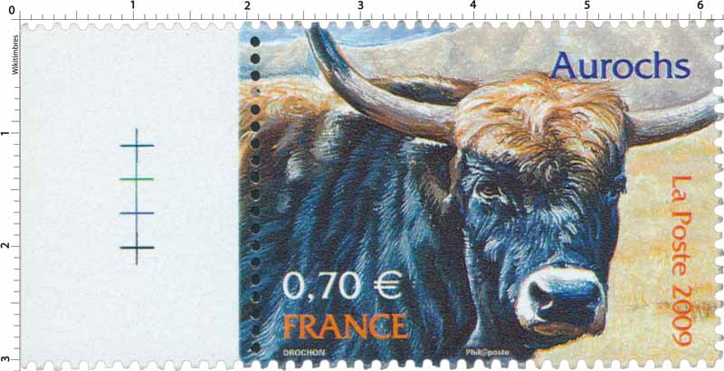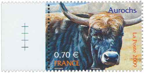 | Description | Animaux disparus ou menacés d'extinction : Aurochs, provenant d'une feuille de 42 TP |