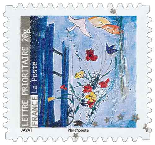 | Commentaire | La mise en vente anticipée a lieu les 7 et 8 novembre au Salon philatélique d'automne, à Paris. Le timbre à date premier jour par Marot représente une femme soufflant sur un pissenlit, les aigrettes se dispersant autour des mots-messages « Amitié, amour, bonheur, santé ». Timbre sans millésime |