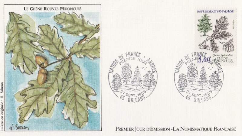 | Description | Chêne pédonculé (Quercus pedunculata), arbre à feuillage caduc dont le fruit est porté par un long pédoncule |