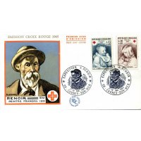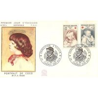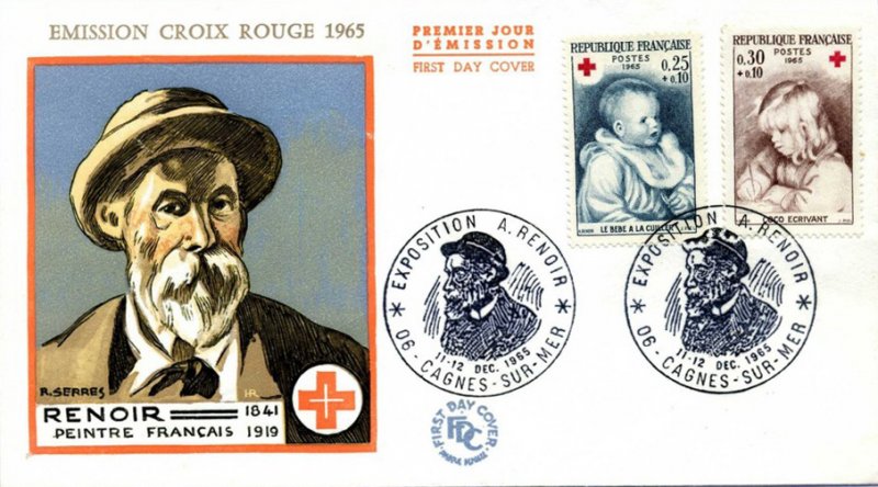 | Commentaire | Ce timbre est grevé d'une surtaxe au profit de la Croix Rouge française Il y a des artistes qu’on admire… et puis il y a Renoir, ce type qu’on sentait capable de peindre la tendresse avec les doigts, même quand ceux-ci ne lui obéissaient plus. En décembre 1965, deux œuvres intimes du maître impressionniste sont mises à l’honneur par les Postes françaises : Coco écrivant et Le Bébé à la cuiller. Deux scènes familiales, douces et silencieuses, à l’image d’un peintre arrivé au crépuscule de sa vie avec une sérénité poignante. Le "Coco" en question, c’est son troisième fils, Claude, né alors que Renoir avait 60 ans passés. À ce moment-là, l’artiste est déjà usé, souffrant d’arthrite déformante – il ne peut plus tenir ses pinceaux qu’avec des bandages… et pourtant, il peint encore. Toujours. Mais revenons un peu en arrière. Avant d’être le patriarche de Cagnes-sur-Mer, Auguste Renoir fut un enfant de Limoges, formé à la peinture sur porcelaine. Ce détail, souvent oublié, donne un indice sur sa finesse de coloriste. Puis, il croise la route de Monet, Sisley, Bazille, et toute la clique du "Café Guerbois". Ensemble, ils créent le mouvement impressionniste presque malgré eux, un peu par défi. C’est Monet qui donne involontairement le nom du groupe avec Impression, soleil levant. On rigole aujourd’hui, mais à l’époque, c’était moquerie et mépris à gogo. Et pourtant, malgré les galères, les ventes ratées, les critiques assassines, Renoir tient bon. Il croit en la lumière, en la vie, en la beauté. Il dit un jour un truc magnifique : "La douleur passe, la beauté reste." Voilà, tout est là. Alors ces deux petits tableaux-là, gravés en 1965, ce ne sont pas juste des hommages artistiques. Ce sont des fragments d’humanité. On y sent l’amour paternel, le quotidien transformé en œuvre d’art. Une leçon d’obstination tranquille et d’affection pudique, à l’image d’un homme qui n’a jamais cessé de peindre, même au bord du silence. WikiTimbres |