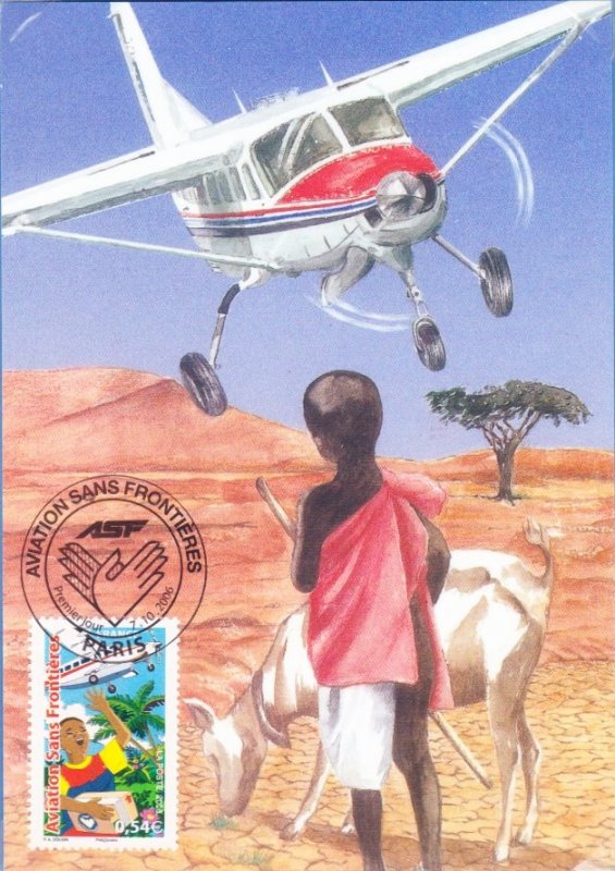 | Description | Aviation sans frontières, 25e anniversaire d'ASF, association humanitaire créé par le volontariat de pilotes français. Représentation d'un enfant avec colis |