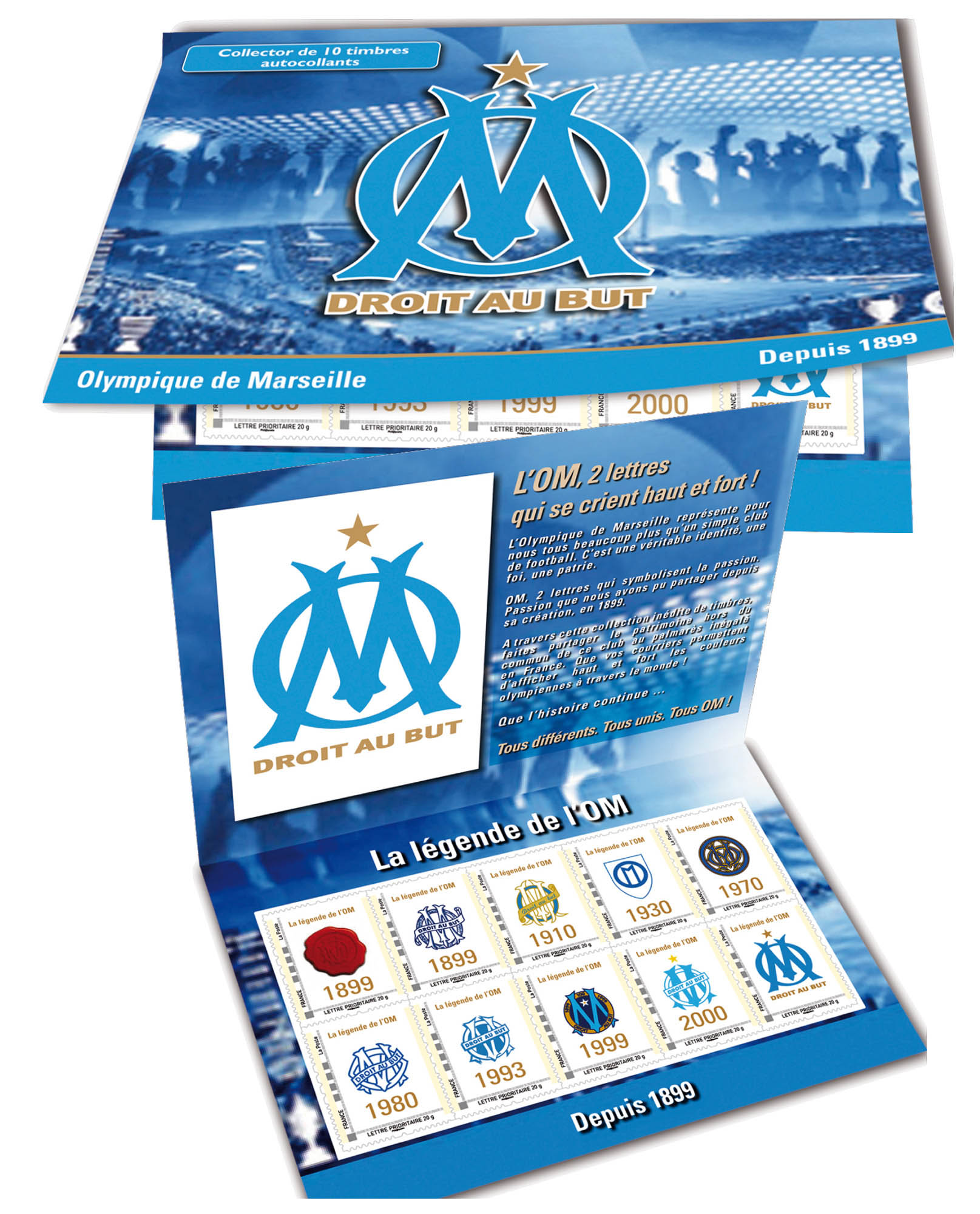 | Commentaire | Livré à plat L’Olympique de Marseille représente pour les marseillais beaucoup plus qu’un simple club de football. C’est aussi une véritable identité, une foi, une patrie. OM, 2 lettres qui symbolisent une passion partagée depuis sa création en 1899.