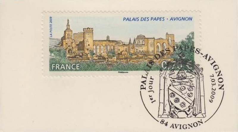 | Commentaire | La manifestation premier jour, dont le timbre à date de Claude Perchat représente les armes du pape Clément VI, a lieu les 7 et 8 mars au palais, à Avignon. Construit à partir de 1335, principalement par les deux papes bâtisseurs, Benoît XII et Clément VI, le Palais des Papes est le symbole du rayonnement de l'Église sur l’Occident chrétien au XIVe siècle. Entouré de remparts imposants, flanqué de quatre tours gigantesques, le monument est aujourd'hui le plus grand palais gothique du monde, et l'un des plus visité des monuments historiques en France. Il constitue - avec le Pont Saint Bénezet, les Remparts, le Petit Palais et la cathédrale des Doms - un ensemble architectural unique classé Patrimoine Mondial de l'Humanité par l'Unesco. Outre la visite de lieux riches d’histoire (fresques, appartements...), le Palais des Papes offre est aussi le siège de nombreux et célèbres événements culturels, dont le Festival d'Avignon créé par Jean Vilar en 1947. |