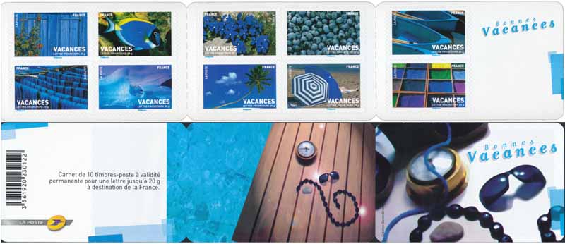| Commentaire | Bonnes Vacances Destinations nuancées pour des vacances en bleu ! Timbre sans millésime |