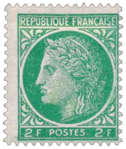 | Commentaire | Ce timbre gommé émis en France en 1946 appartient à la deuxième série des Cérès de Mazelin, reprise républicaine d’un type allégorique majeur de la philatélie française après la Seconde Guerre mondiale, et s’inscrit dans la continuité des émissions courantes destinées à assurer les besoins postaux dans un contexte de réorganisation tarifaire et de forte reprise des échanges. La valeur de 2 francs vert-jaune est mise en vente le 12 août 1946 pour répondre notamment à l’affranchissement des journaux à destination de l’étranger, usage cohérent avec la montée en puissance de la diffusion de la presse française hors du territoire national à cette période. Le dessin de Charles Mazelin, gravé par Henri Cortot, reprend la figure de Cérès, symbole républicain de prospérité et de stabilité, déjà utilisée au XIXᵉ siècle, ici adaptée aux techniques industrielles de l’après-guerre. Imprimé en typographie à plat, ce timbre se caractérise par une production de masse très importante, révélatrice de son rôle central dans les flux postaux de l’immédiat après-guerre, et occupe une place structurante au sein de la deuxième série Cérès de Mazelin, émise entre 1945 et 1946 pour compléter et ajuster les valeurs faciales disponibles. |